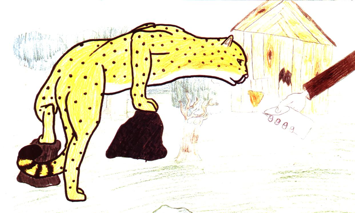 The old man worked for weeks in his hut, and only once every two-three days, pushed by hunger, he went out to try once more his luck in hunting, with alternate results. Until one day he came out of his hut carrying something in his arms. It looked like a cat...but it was not a cat like the other cats. It was a cheetah.