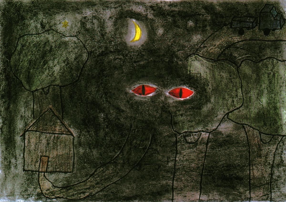 Si avviò sul sentiero, ed era già oltre metà strada quando udì un fruscio nei cespugli dietro di lui. Si voltò terrorizzato... e poi si rese conto che non c'era da preoccuparsi delle creature della foresta che facevano rumore. Tirò un sospiro di sollievo e si voltò di nuovo verso il sentiero. Ma adesso c'erano due occhi luccicanti che lo fissavano dal sentiero davanti a lui, e allora capì che non valeva più la pena di correre.